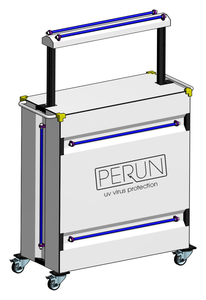 Mobilne urządzenie ramowe do dezynfekcji za pomocą promieniowania UVC.